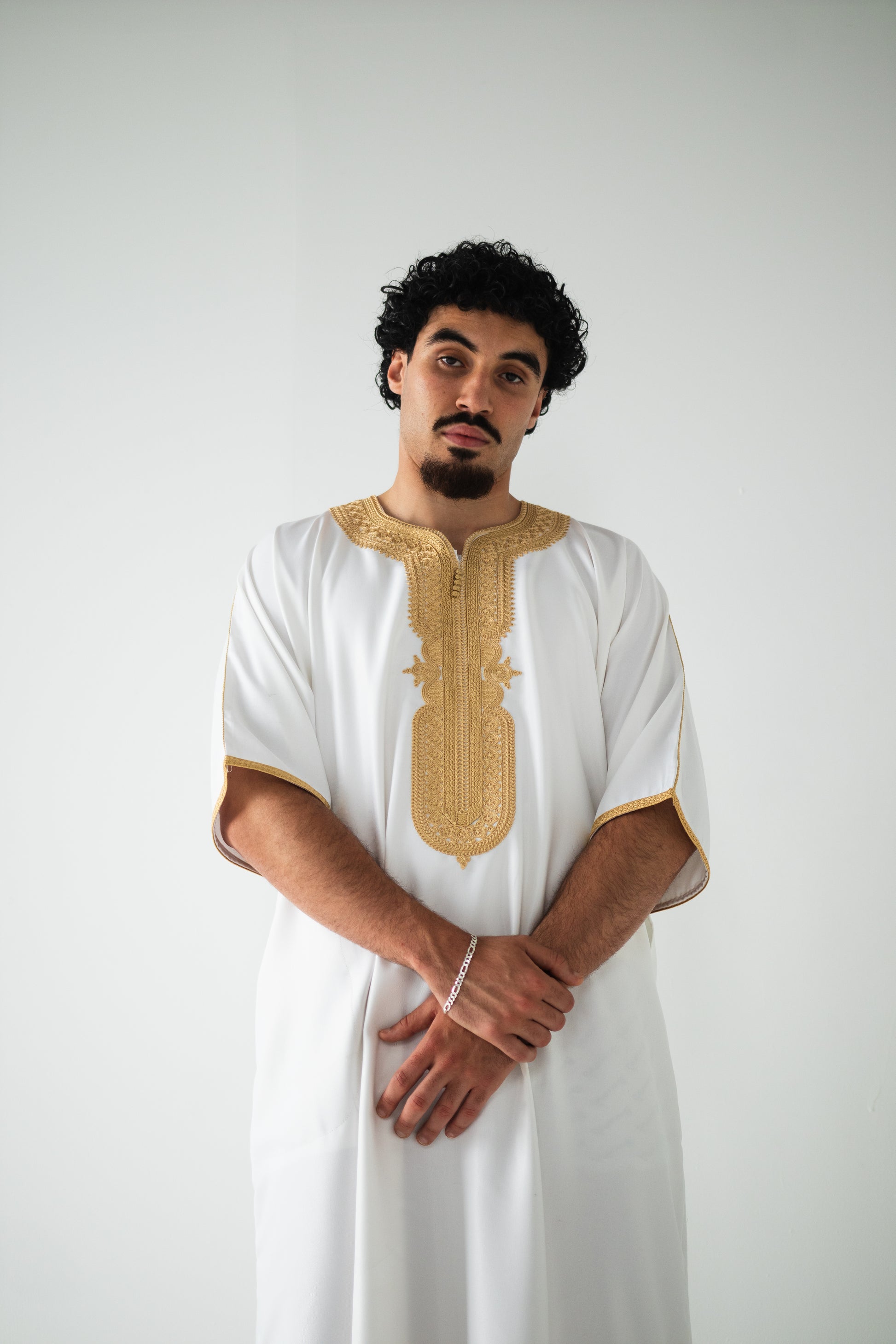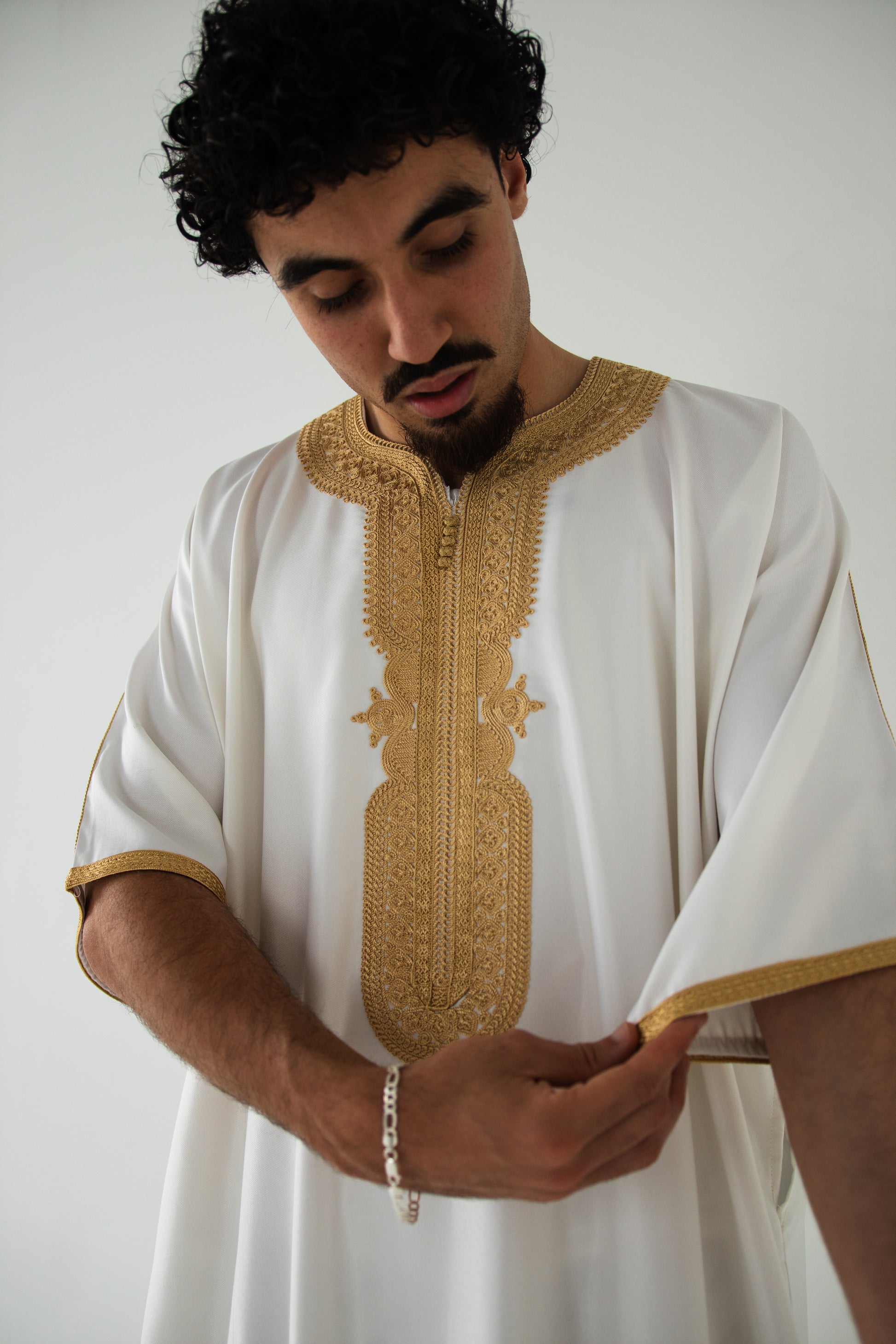 Premium Gold & White Moroccan Thobe